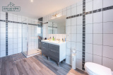Au premier étage, 3 grandes chambres et une salle de douche et WC, double vasque sont proposés.