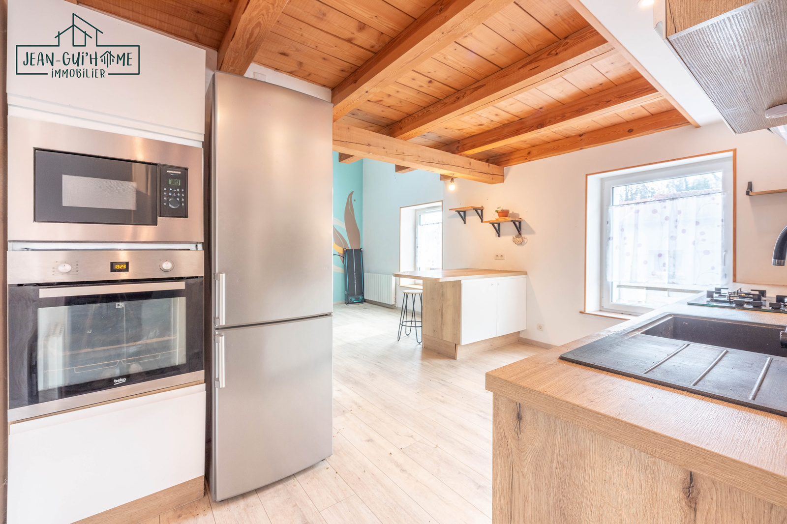 Montez les quelques marches pour profiter de la magnifique pièce de vie composée d'une cuisine équipée récente ouverte sur un beau salon-séjour. Une salle d'eau refaite à neuf et toilettes complètent ce niveau.