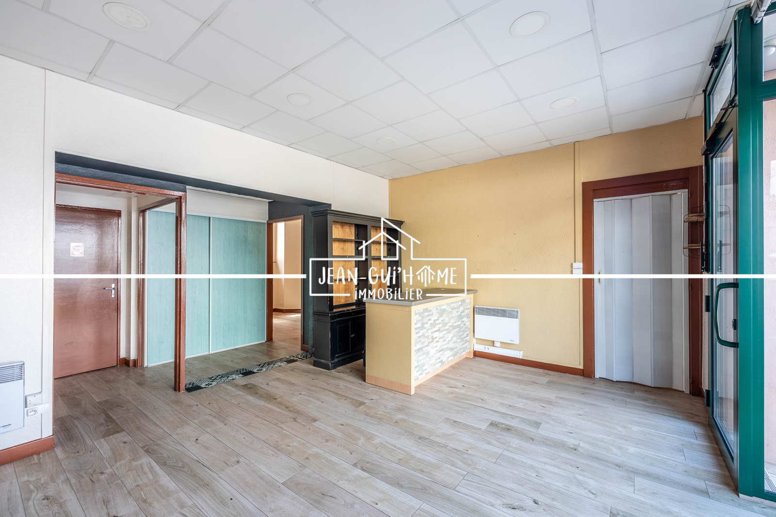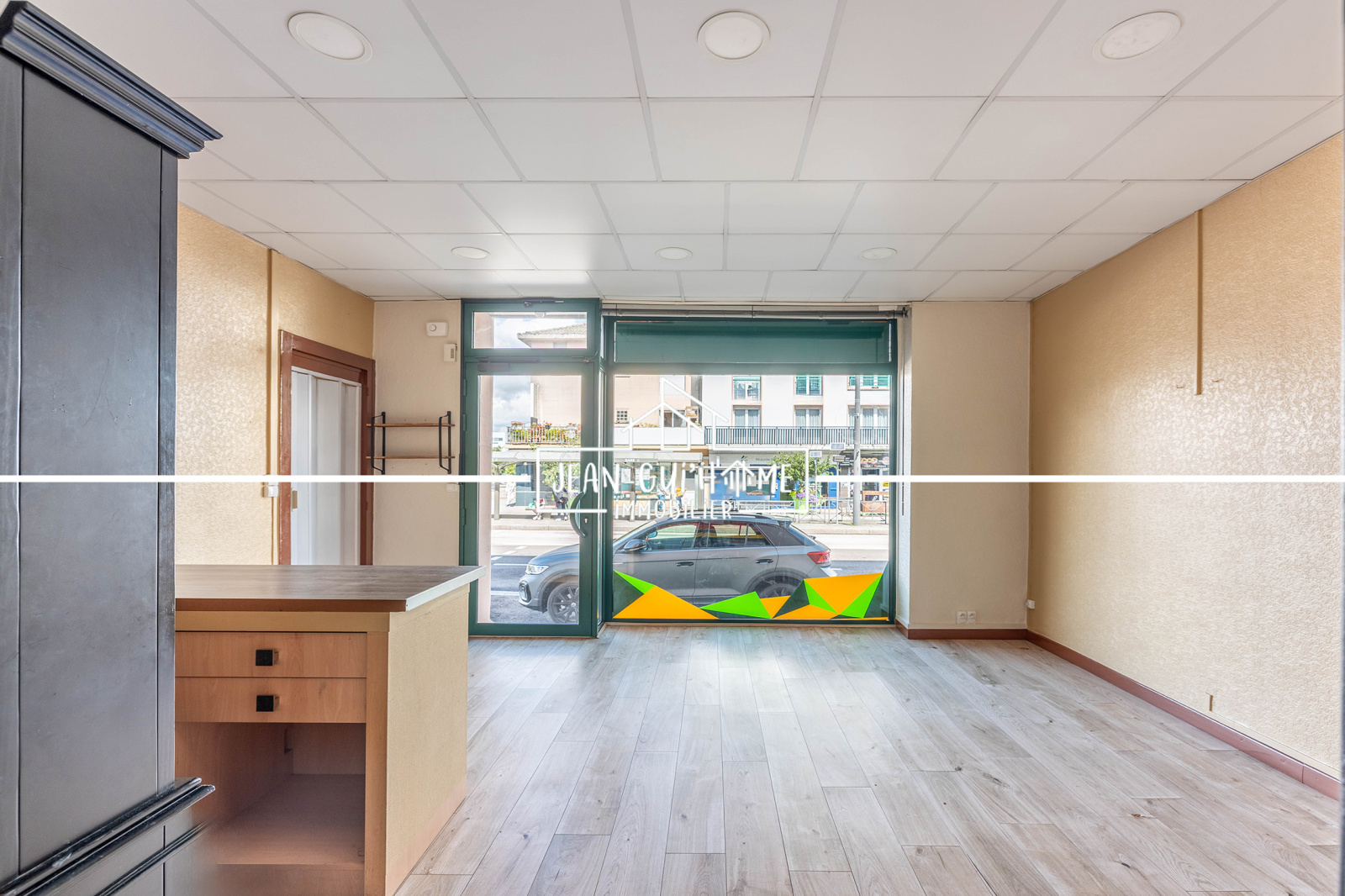 Il est composé d'un bel espace accueil d'environ 20m², un espace rangement, un bureau, une cuisine et un WC.